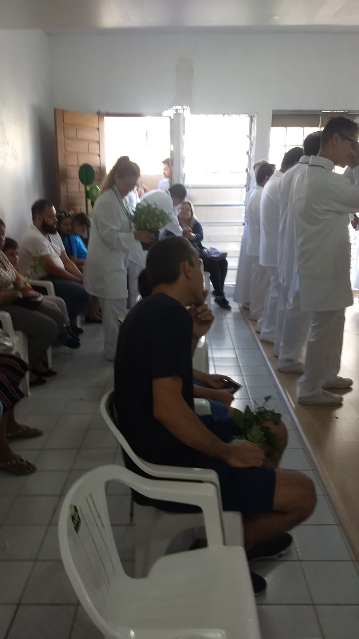 Ao final dos trabalhos, o caboclo 7 flechas agradeceu e entregou uma flor para cada pessoa e médium presente.