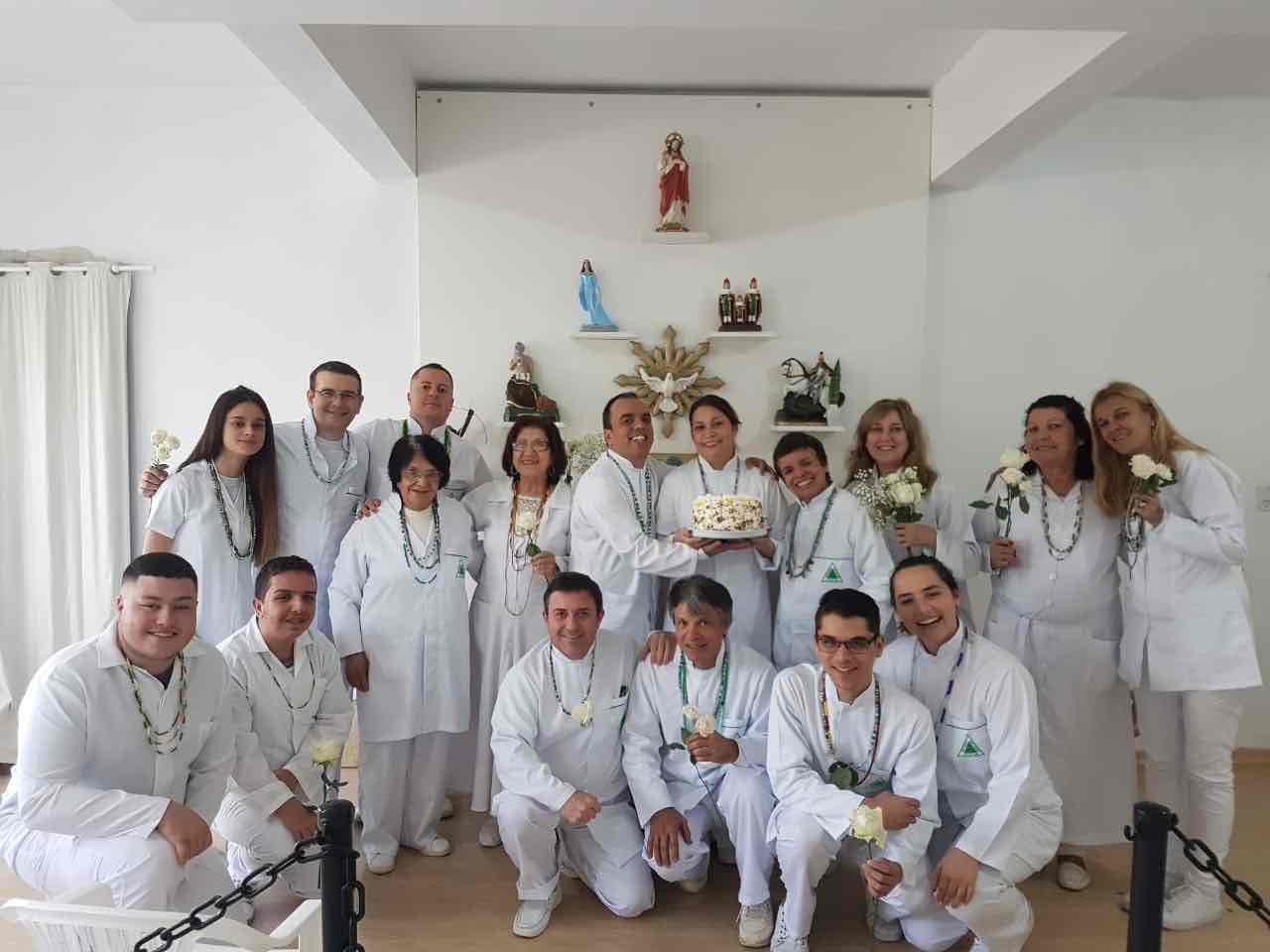 Aos vinte e três dias do mês de junho de 2019, no terreiro de Mae Maria Fraternidade Sete Flechas, foi realizado o batizado da médium Kátia, tendo como padrinhos espirituais as entidades OXUM da praia e Caboclo Sete Flechas, e como padrinhos materiais Marcelo e Adriana. A cerimônia foi emocionante ! 12 médiuns da casa estavam presentes! Compareceram e participaram ativamente da sessão de pretos velhos também 6 médiuns do terreiro do Ogum da Mata Virgem e Iansã, com sua médium chefe Sra. Suely Plein. Na abertura dos trabalhos o amigo Roger palestrou brevemente sobre a história de Elias e João Batista, assim como o significado do batismo e o batismo do próprio Cristo. Na leitura do Evangelho, realizado pelo nosso amigo Mateus, foi abordado sobre os diferentes tipo do Amor e seu significado, incluindo o Amor que devemos ter a Deus e a nós mesmos! Essa foi a décima quarta sessão pública da casa !