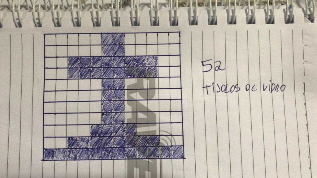 Em 04 Janeiro de 2019, enquanto planejava transformar a antiga garagem da minha vó numa terreira de Umbanda, em um momento de inspiração Matinal, me foi mostrado uma enorme Cruz na fachada do futuro terreiro. Peguei o papel e caneta e desenhei o que havia enxergado. Ao calcular a quantidade de tijolos de vidro que seriam pintados, descobri que seriam necessários 52 tijolos. 5 + 2 = 7 ! Muita Benção!
