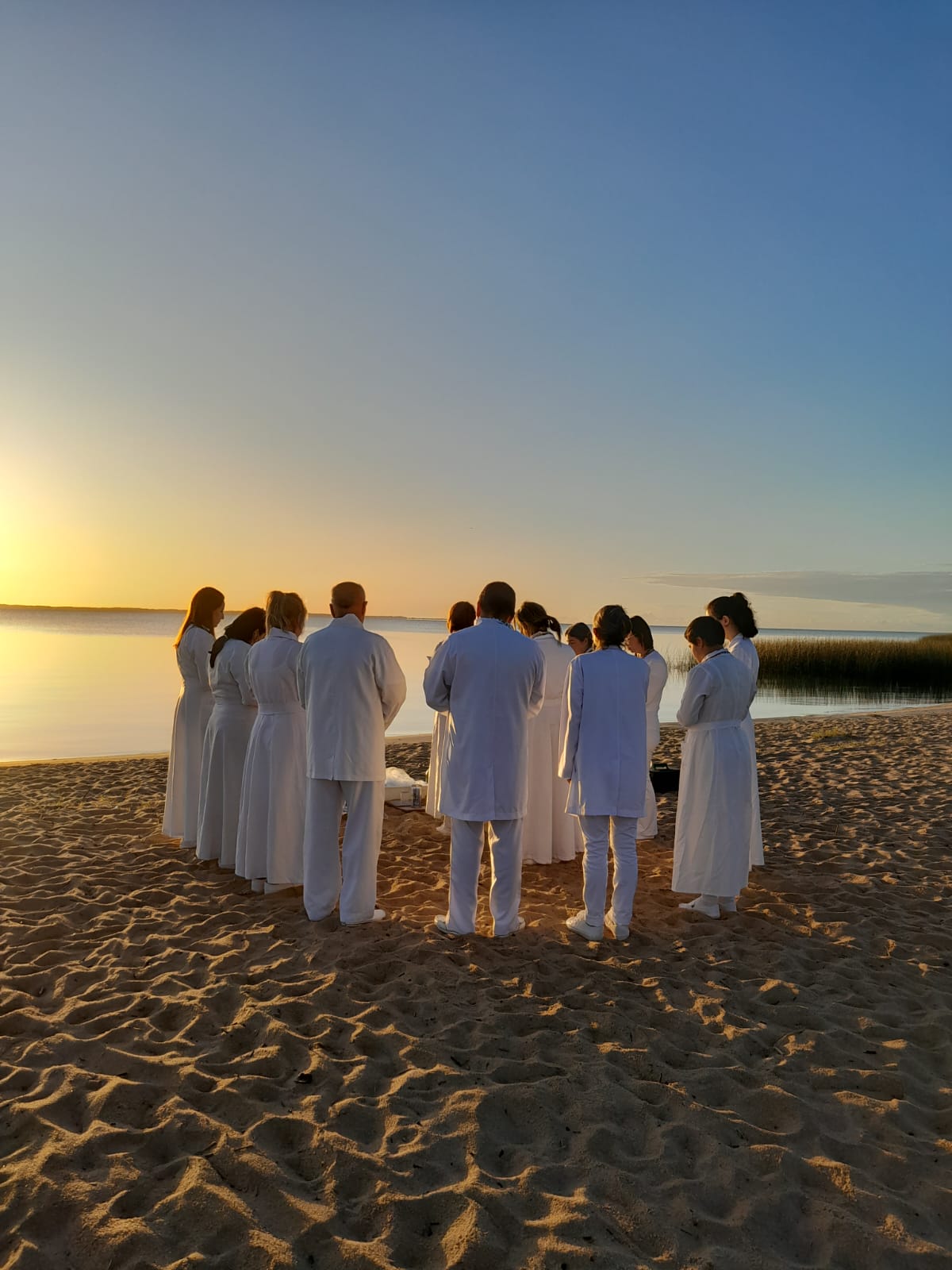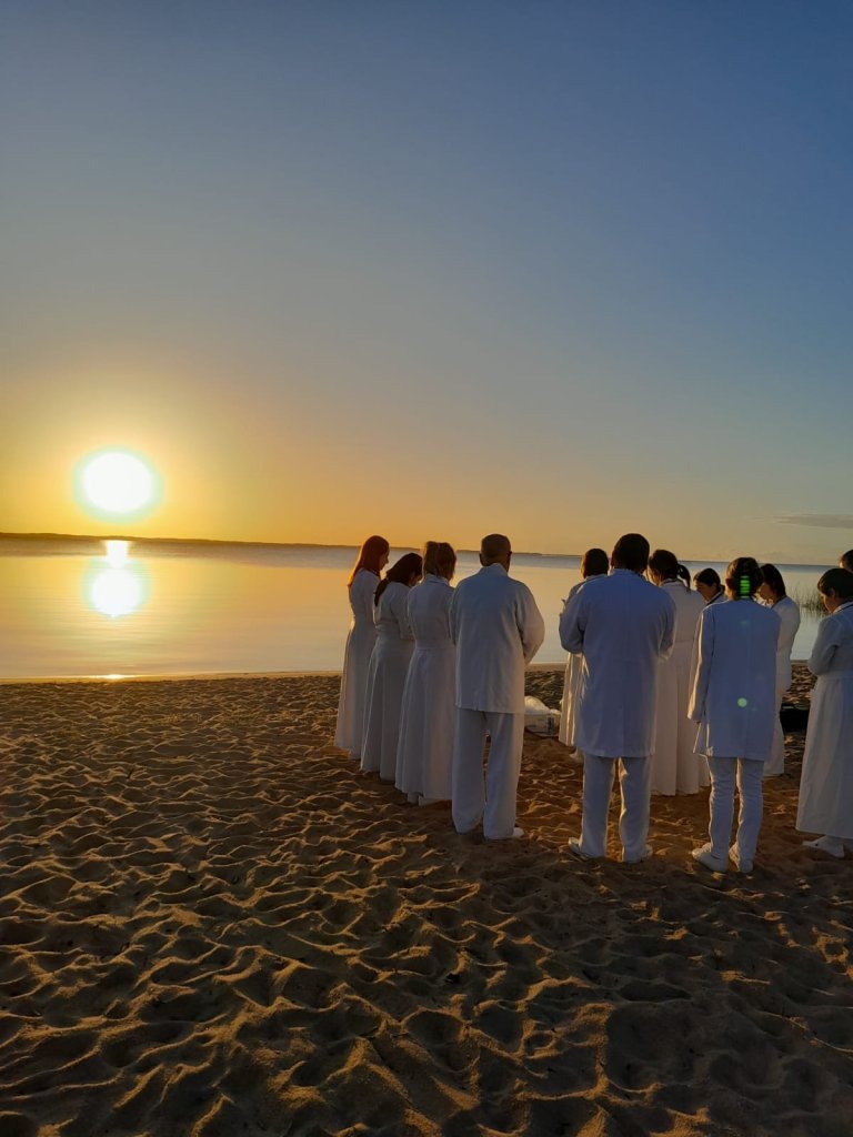 Foi um dia de muita emoção e amor, chegamos à praia juntos com o nascer do Sol! A manhã estava linda, a água cristalina e calma. Iniciamos o trabalho ao som dos pássaros que nos receberam com rasantes de bandos sobre a corrente.