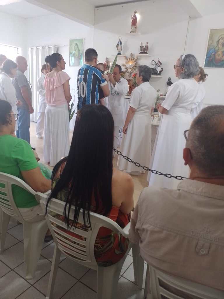 Em nossa última sessão pública do ano de 2023 realizamos o batizado de nosso querido Heitor Jesus! Com a presença das dirigentes Nilza e Aparecida da terreira de Mãe Maria fraternidade Cacique Ubirajara! A casa estava cheia e atendemos 30 pessoas neste dia! Filho de Lucas e Rosi, nosso querido Heitor Jesus recebeu o sacramento do batismo Cristão, sendo abençoado seus 5 sentidos por nossos Orixás! Maria Filibisna e Nego Juca foram os padrinhos espirituais, Clóvis e Raquel foram os padrinhos materiais.
