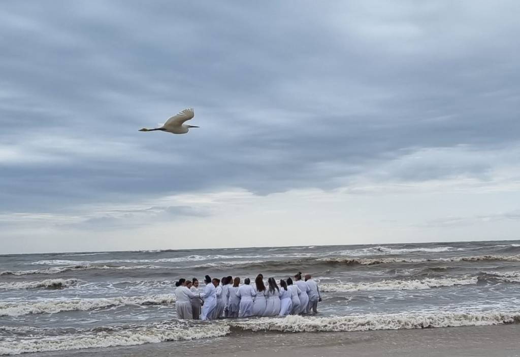 Saímos às 04hs de Canoas e iniciamos nosso trabalho às 06hs da manhã em Tramandaí para homenagear a rainha do mar, nossa Mãe Iemanjá!
