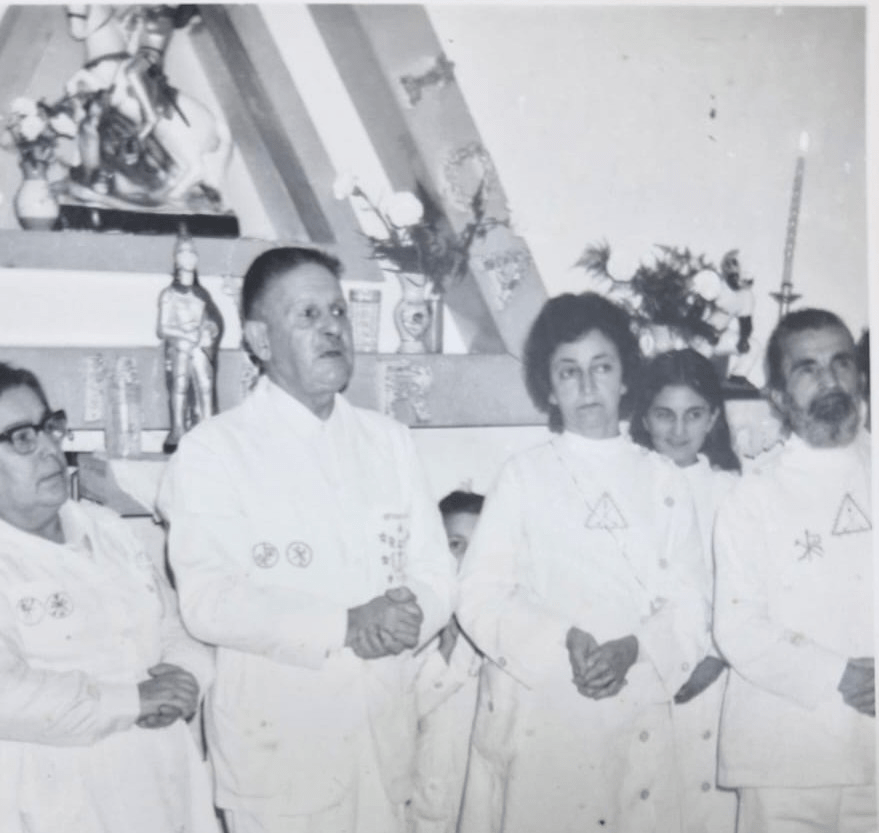 Irmão Astrogildo de Oliveira visitando o templo do irmão Isaías em São Leopoldo (Década de 70). Da esquerda para a direita na foto: Lenira esposa de Astrogildo, Astrogildo de Oliveira, Noêmia e seu esposo Isaías Francisco da Silva.