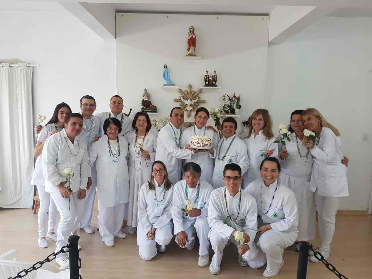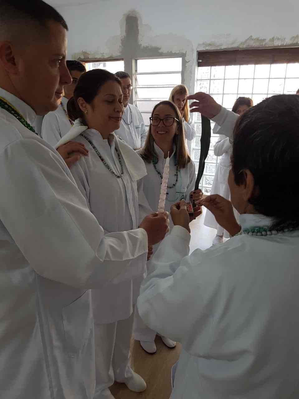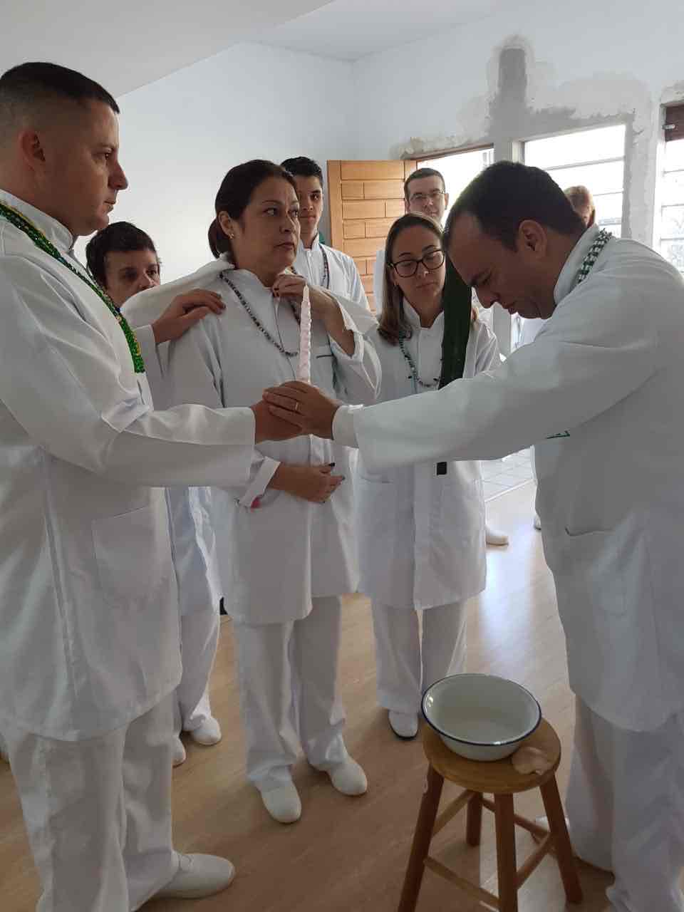 Aos vinte e três dias do mês de junho de 2019, no terreiro de Mae Maria Fraternidade Sete Flechas, foi realizado o batizado da médium Kátia, tendo como padrinhos espirituais as entidades OXUM da praia e Caboclo Sete Flechas, e como padrinhos materiais Marcelo e Adriana. A cerimônia foi emocionante ! 12 médiuns da casa estavam presentes! Compareceram e participaram ativamente da sessão de pretos velhos também 6 médiuns do terreiro do Ogum da Mata Virgem e Iansã, com sua médium chefe Sra. Suely Plein. Na abertura dos trabalhos o amigo Roger palestrou brevemente sobre a história de Elias e João Batista, assim como o significado do batismo e o batismo do próprio Cristo. Na leitura do Evangelho, realizado pelo nosso amigo Mateus, foi abordado sobre os diferentes tipo do Amor e seu significado, incluindo o Amor que devemos ter a Deus e a nós mesmos! Essa foi a décima quarta sessão pública da casa !