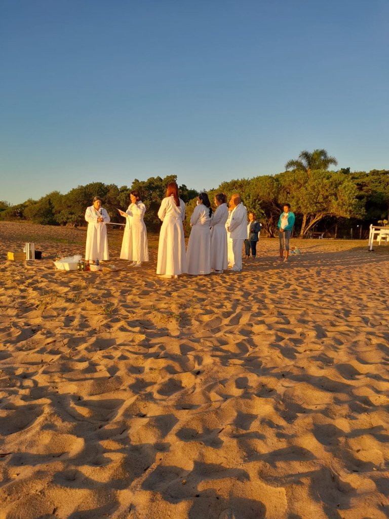 Em 05 de Fevereiro acompanhamos nossos amigos da terreira de Mãe Maria na homenagem realizada em Tapes/RS. Para nós que respeitamos a tradição deixada pelo nosso amigo Darcy Dias da Silveira, o qual fundou e dirigiu a Mãe Maria desde 1955, o dia 02 de Fevereiro é destinado a prestar homenagens a Oxum pois Nossa Senhora dos Navegantes é a protetora dos rios de água doce, portanto representa nossa Oxum da Umbanda.
